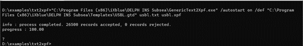 GenericText2Xpf.exe" /autostart on /def "C:\Program Files\Exail\DELPH INS Subsea\Templates\USBL.gtd" usbl.txt usbl.xpf