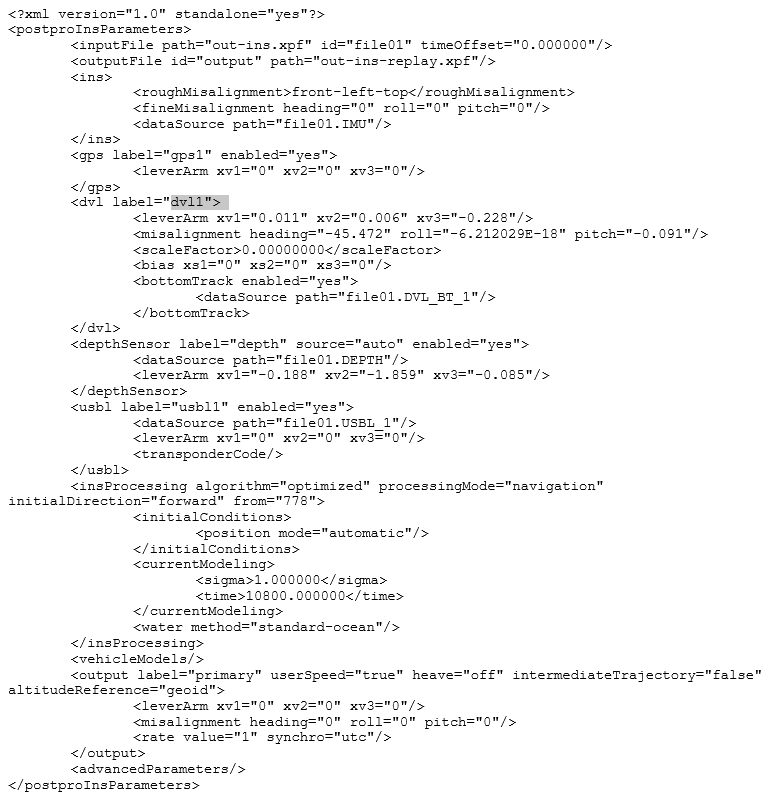 You may prepare an XML processing parameters file directly from a Delph INS Subsea project. Once you have created this XML file, you may edit it as you wish and use it in the command prompt associated to the PosproIns command.