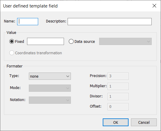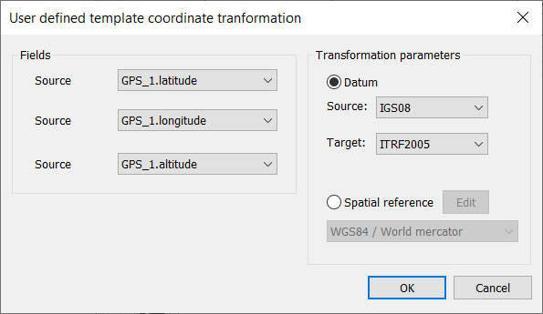 Select the fields and the transformation parameters. Then click on OK button. The fields ares added to the list as posX, posY and posZ.