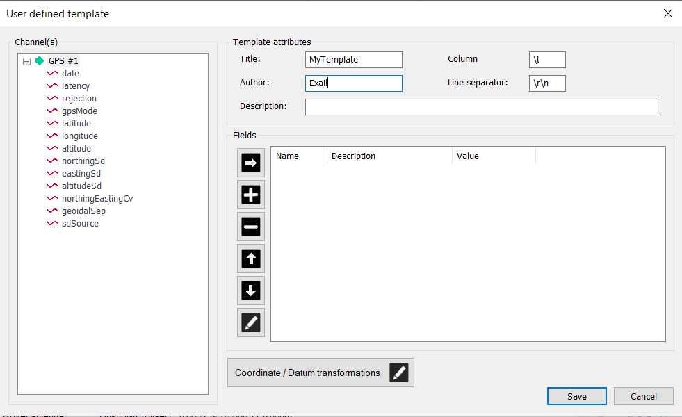 To save the created template, click on Save button. Enter the name of the template then click on OK button. The template is saved into the "\Exail\Delph INS Subsea\Templates" directory. |