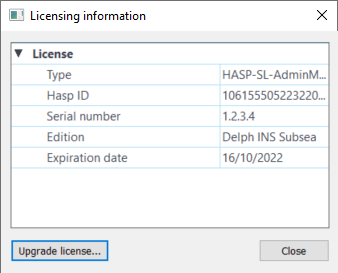Select the ► Licensing menu and check the Type, Serial number of your license, the Edition status and Options.