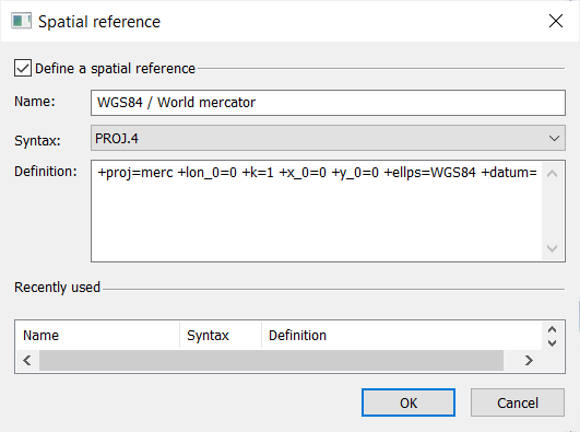 You may select a spatial reference among the Recently used list. |