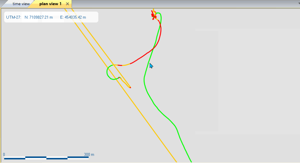 | 4. | Click on the OK button. The trajectory is displayed in several colors: |