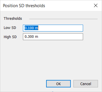 | 3. | By clicking on the Position SD option in Color mode of the xpf file in the Plan manager, the following window is displayed to enter the low and high standard deviation values: |