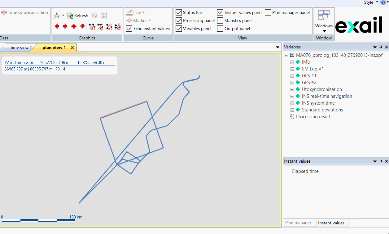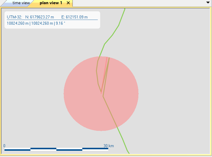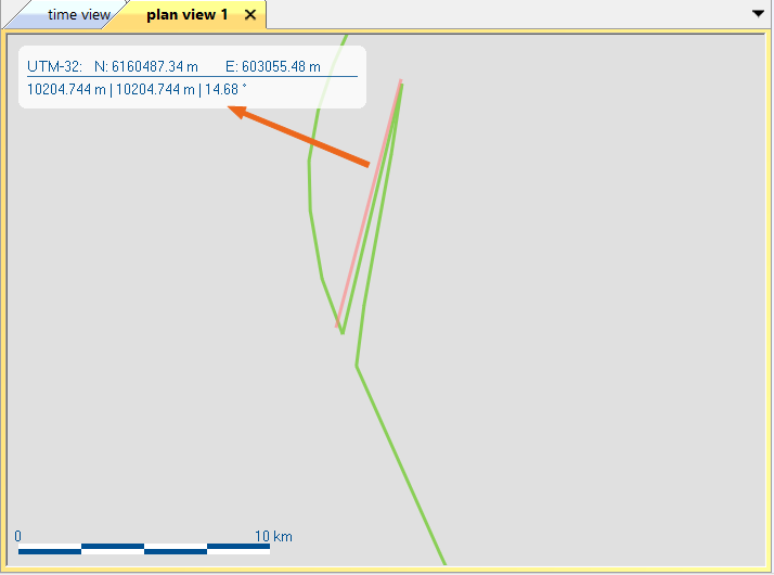 | 4. | Click on the 2D geographical view for the first point of the measure then release the mouse button at the second point: |
