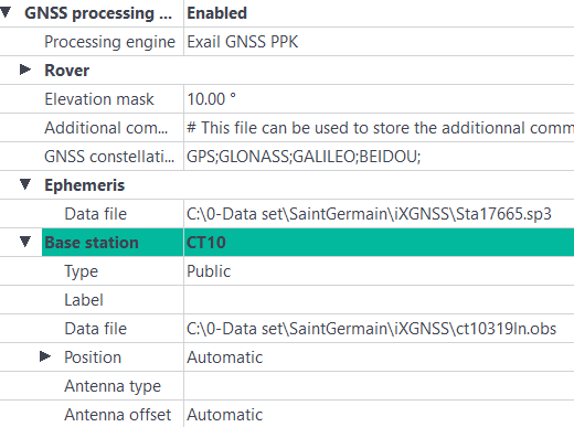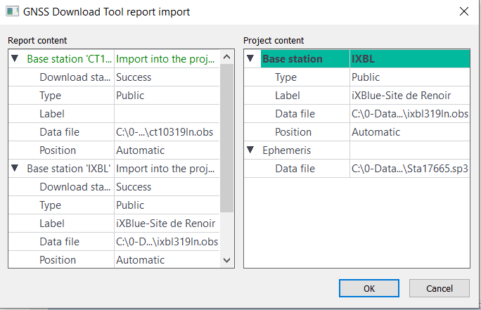 The downloaded data is stored in the Rinex sub-directory (raw files from Internet). The downloaded base station is added to the project with irs information: