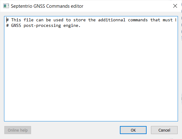 Note 4: The commands are sent at the end of the GNSS engine initialization. If the command defining the elevation mask is defined in this window, the value defined in the GNSS processing parameters is overwritten.