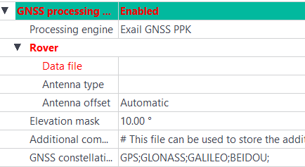 | 7. | Make sure that the GNSS processing parameters is Enabled. |