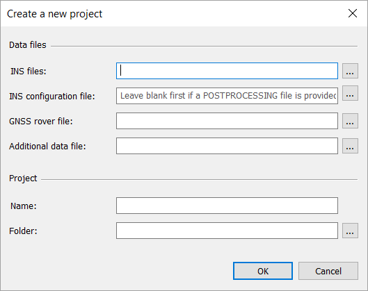 | 3. | If you have already created your project without a GNSS rover file, click on the right of the Rover – Data file and browse to select the desired file. |