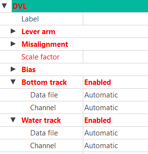 In the Processing panel at left, right click on a parameter and select Add Aiding Sensor then select DVL. The following instruction is added to the processing panel: