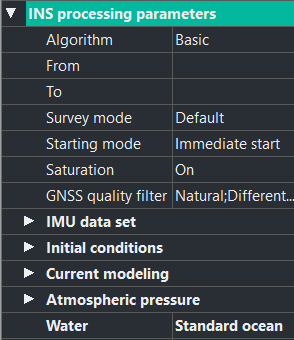| 1. | In the Processing panel, expand the INS processing parameters. |