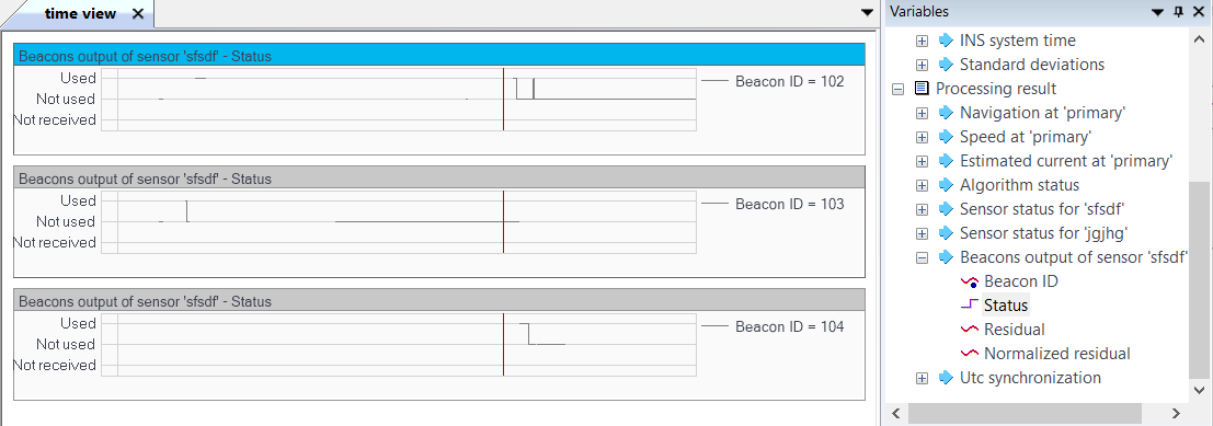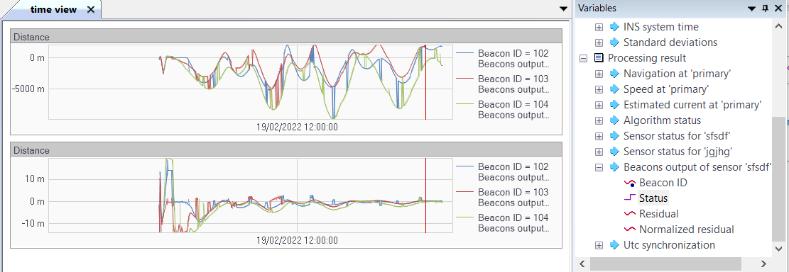 Range meter (LBL) data can be displayed in a graph form by using the drag and drop function from the Variables panel to the Time view of Delph INS Subsea.