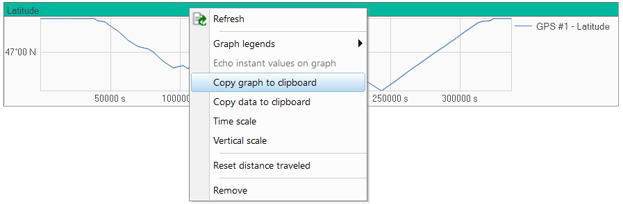 You can export one or several graphs that are displayed by Delph INS Subsea. You can copy the graph to the clipboard of your computer and then paste it in any application of your choice.