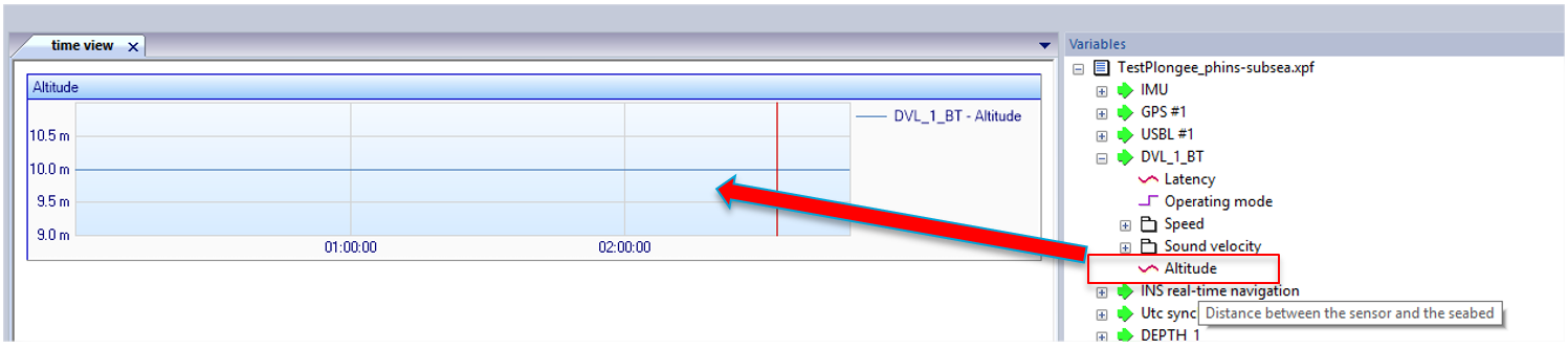 Better results are obtained when the range to bottom is constant. This parameter can be displayed into the DVL_BT channel with ‘altitude’: