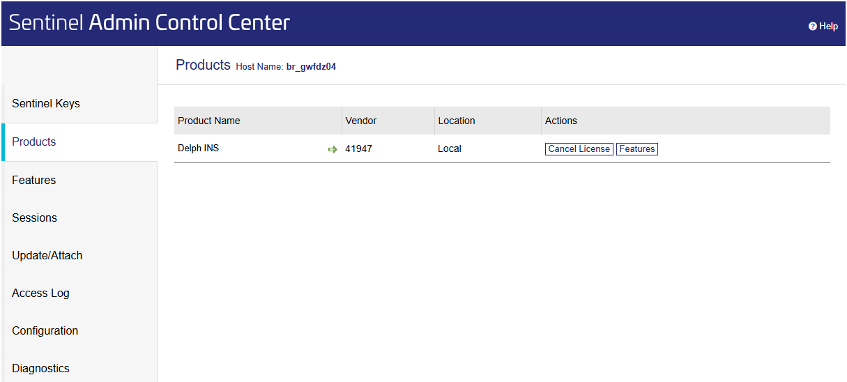 | 1. | On the target machine where the detached license is installed, open http://localhost:1947. The Sentinel Admin Control center page is displayed. |