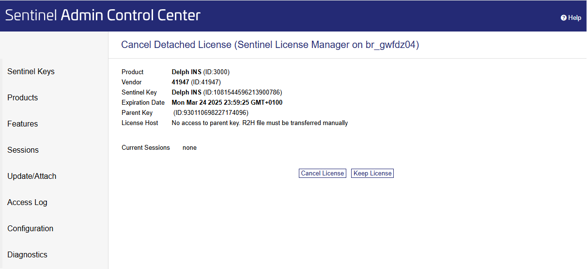 | 3. | Click on the Cancel License button and confirm the operation on the next screen: |