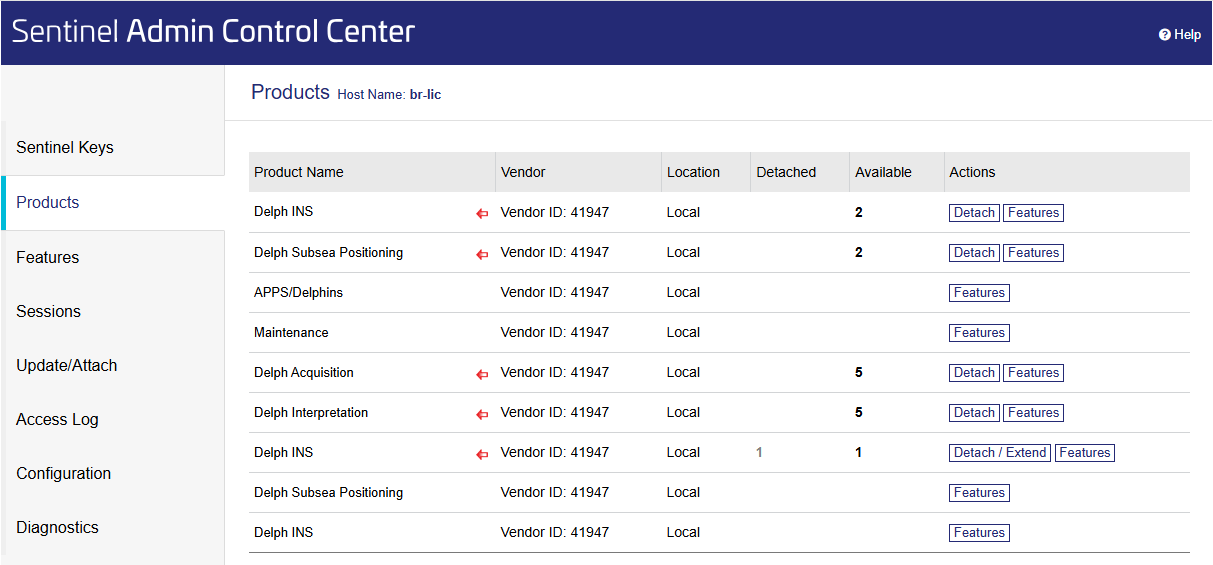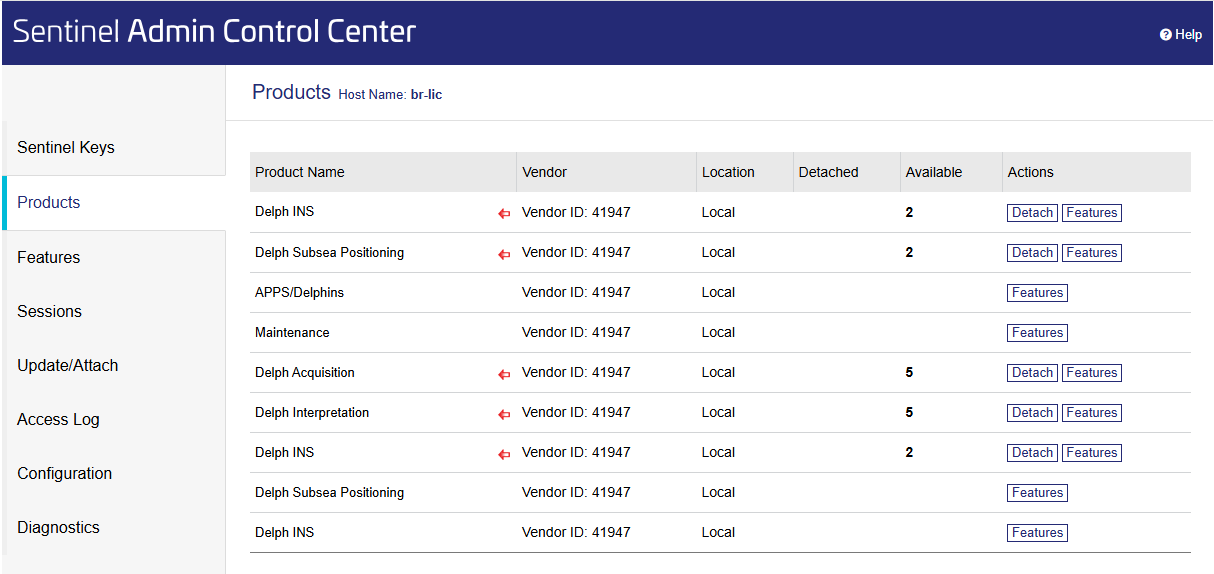 | 9. | Click on the Products tab on the server, it shows the license is restored and there is no detached license anymore: |