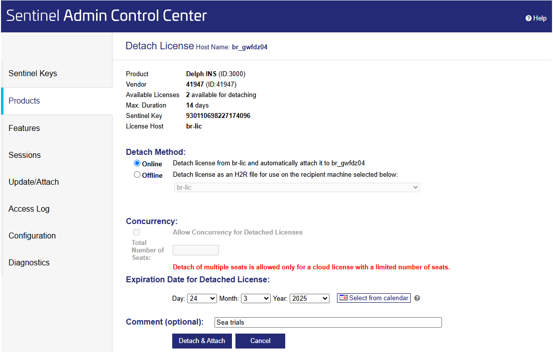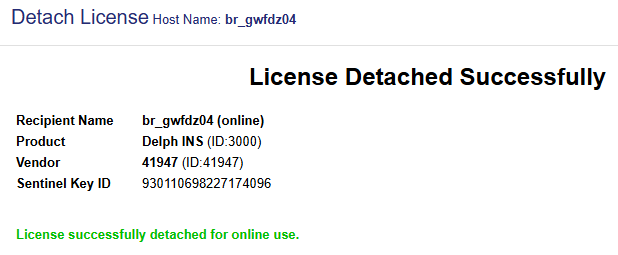 | 5. | Click on Detach & Attach, a message is displayed to indicate that the license is now detached: |