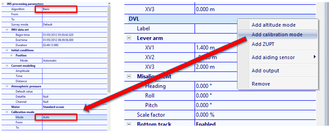 | 1. | In INS processing parameters, set the Algorithm to Basic and set the Calibration Mode on Auto: |
